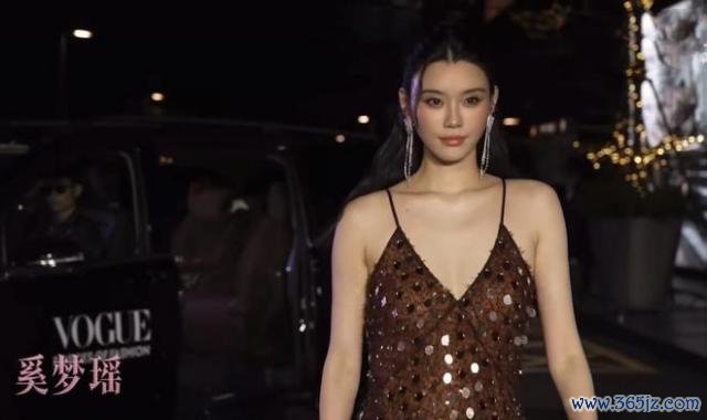 奚夢瑤當晚著裝十分亮眼,深 V 高開叉戰勝看點統統,戰勝上還嵌滿圓形亮片,在燈光的扶植下閃閃發光,把奚夢瑤映襯得格外精明。