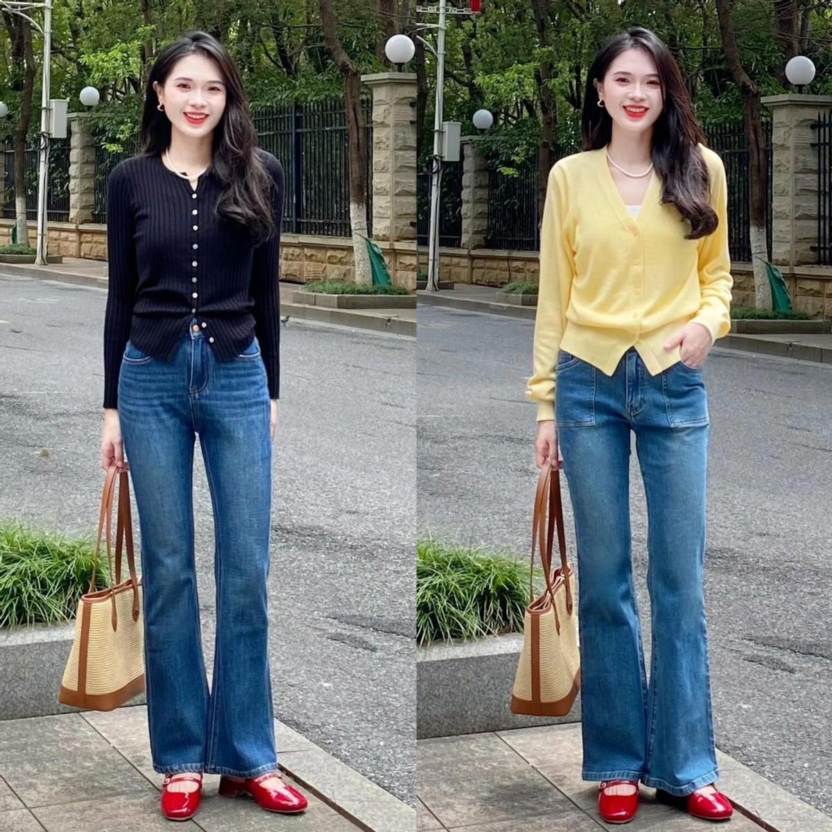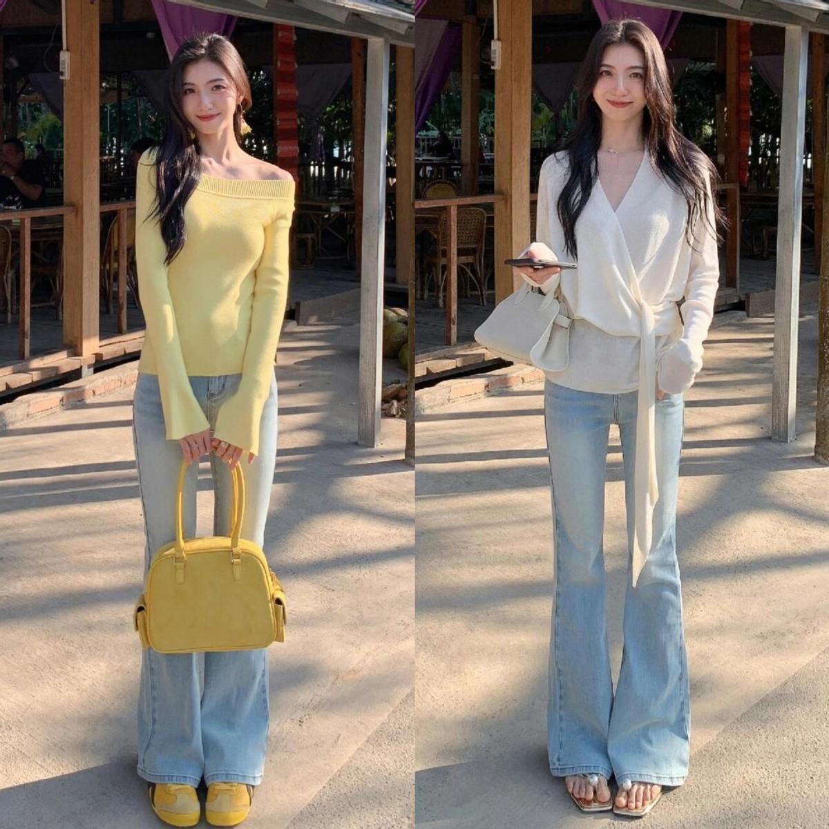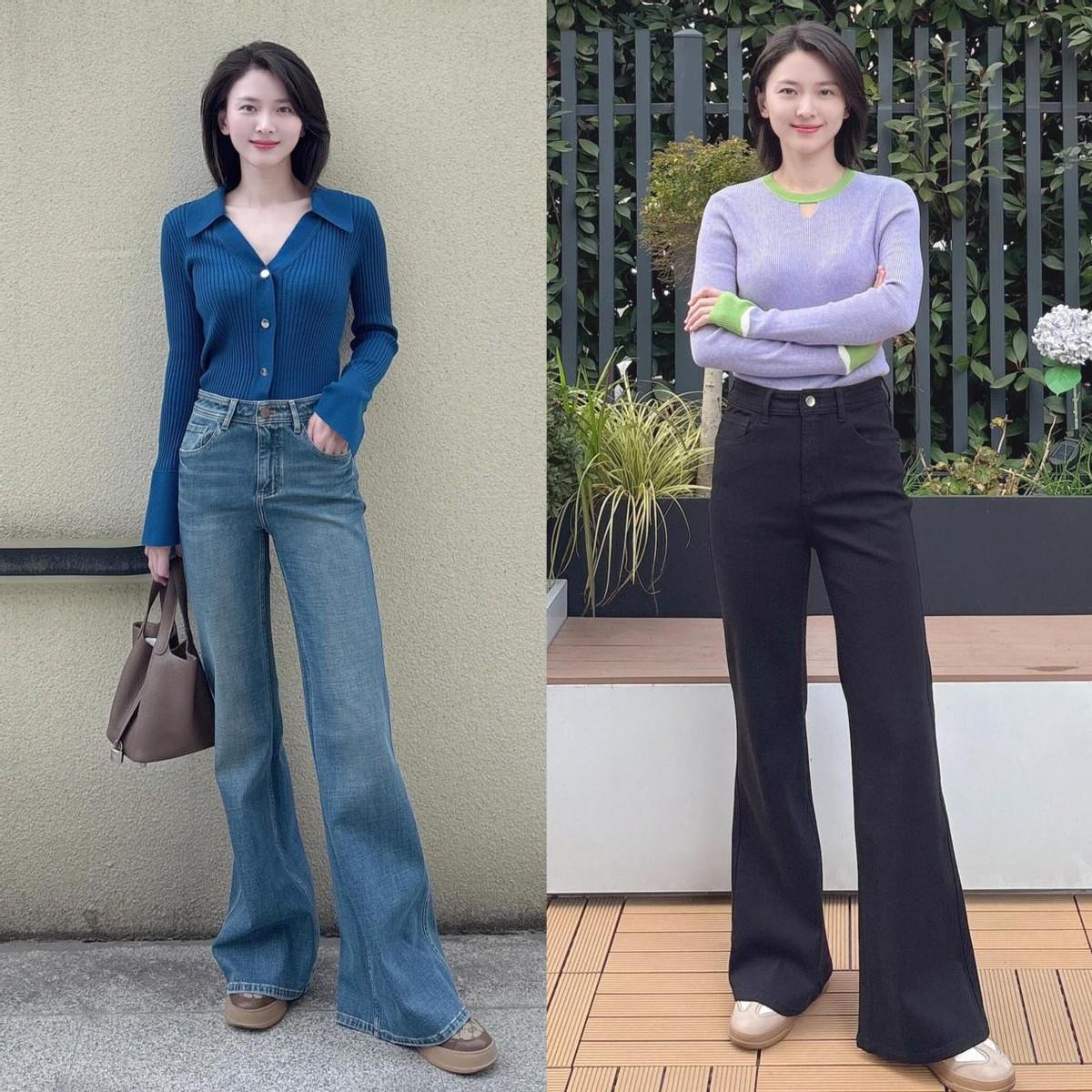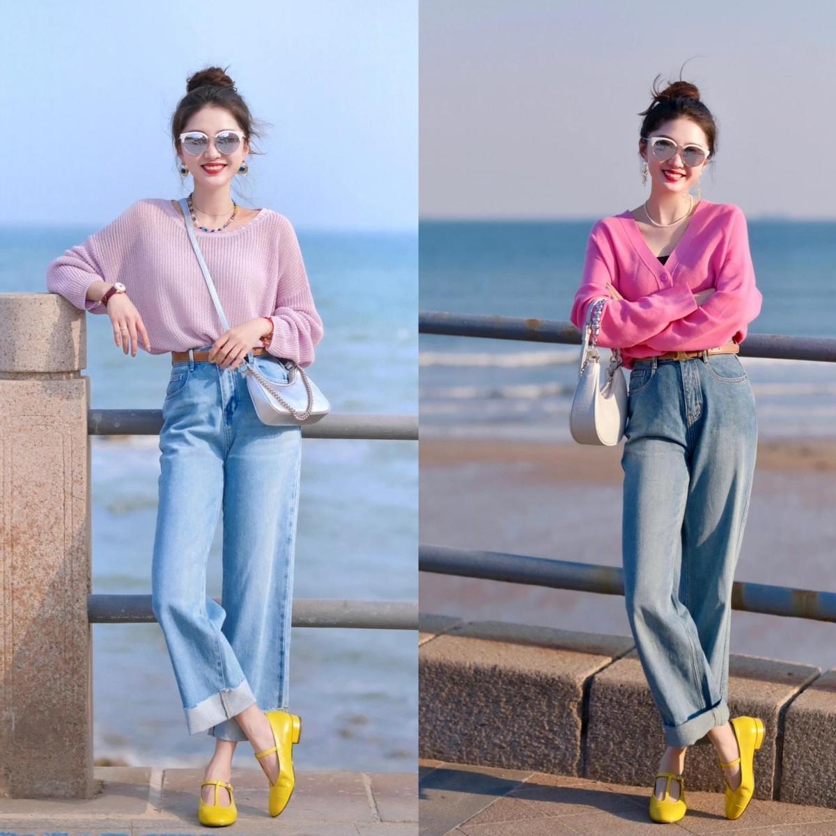 微喇的牛仔褲褲型復舊還私有,大腿相比修身,可以突顯你的弧線,小腿的喇叭褲型繾綣則可以修飾小腿弧線,遮住你的腿部肌肉,看起來顯瘦極了。
