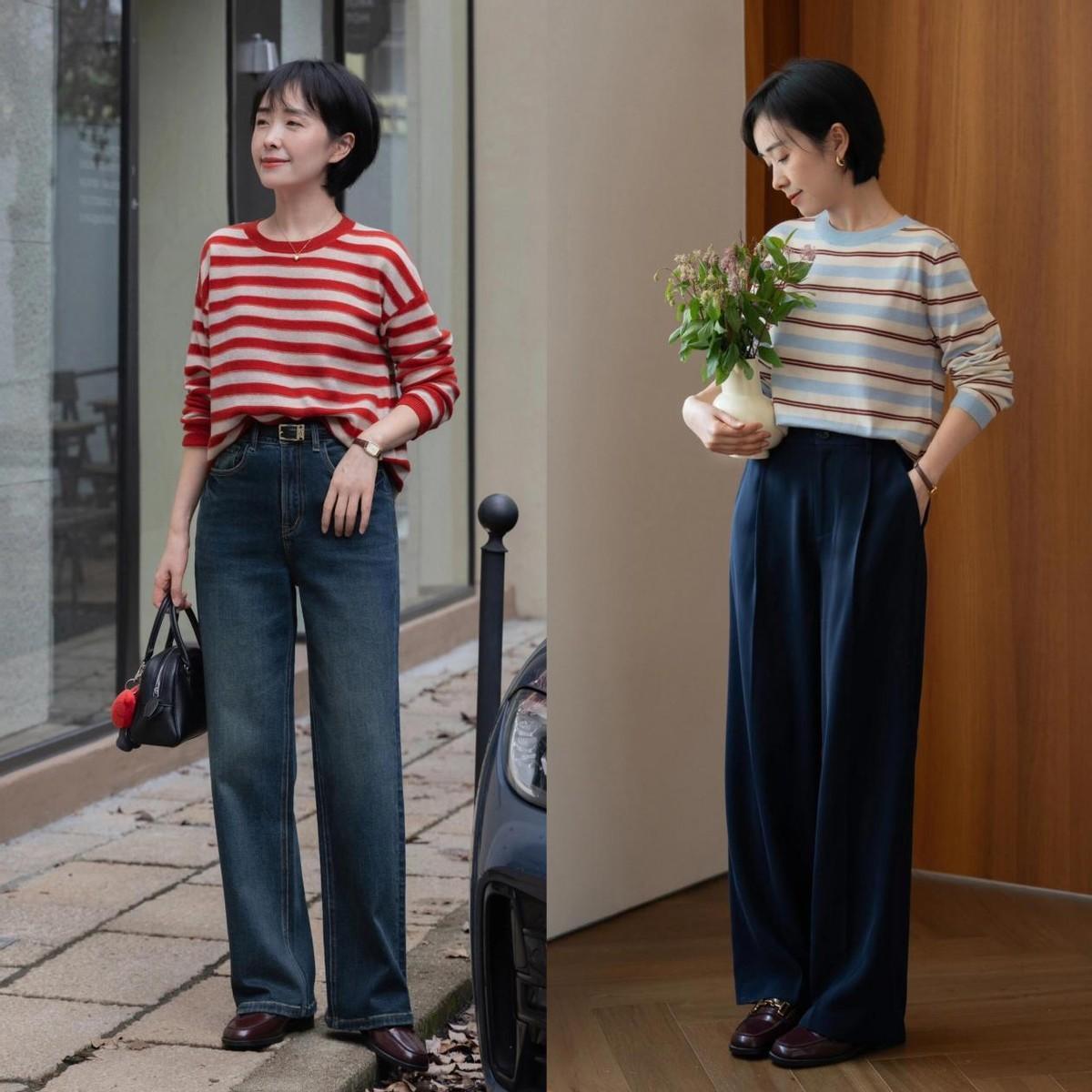條紋的真摯衫搭配直筒牛仔褲,這零丁搭配聯結基礎款的單品,卻穿出了出類拔萃的后果,條紋的元素看起來從簡清楚,直筒牛仔褲也拉伸了下半身的比例,輕莽撞松顯瘦增高。