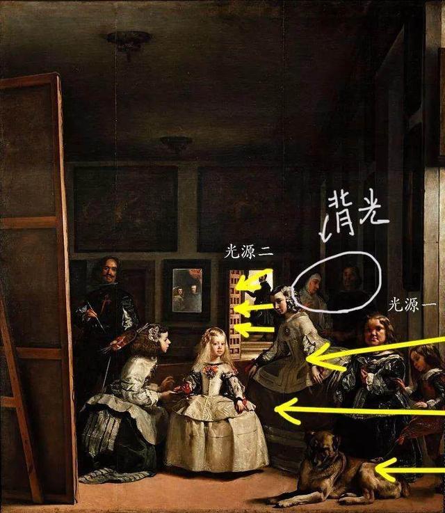這即是《宮娥》最獨到的少量,在傳統的宮廷畫中,畫家的視角即是原始視角,顯得相等單一,但在這幅畫中,畫家既在看咱們,也在看國王夫人,國王夫人能看到公主一排東談主和門口的隨從,也能通過鏡子看到我方。