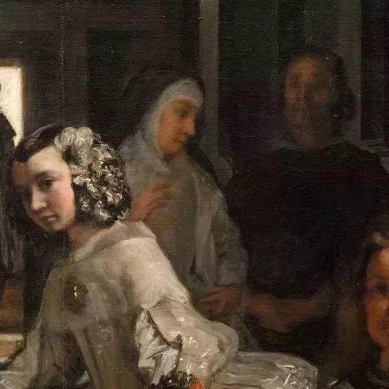 不僅如斯,委拉斯凱茲給這幅畫開了一扇門,光澤從門口射入,這讓他畫中的縱深感顯得更為“高檔”,咱們的視野像門外蔓延的同期,也向畫的左邊蔓延。