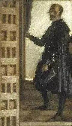 即是處于右后方的男隨從,他的體魄簡直要和暗角如魚似水,臉部也疲塌不清,他站著的位置碰巧是兩處光源的死角,遠瞭望去,咱們很難發現他的存在,這體現出畫家精好意思的處理手段。恰是這些絕頂精彩的光影哄騙,令整幅畫顯得檔次分明。