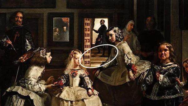 國王夫人:在這幅畫里,惟有國王夫人的視角是看得見門外隨從的,是以從他們的角度上來說,一個隨從過程,恰順目擊了此時發生的這一切。